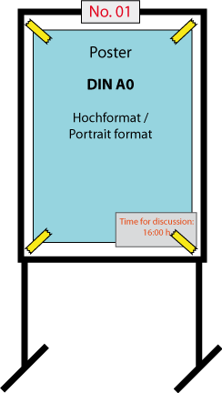 Die Postersitzung findet im Tagungsgebäude, Carl-Zeiss-Straße 3 im Erdgeschoss und ersten Obergeschoss vor den Hörsälen statt. Die Postersitzung des Fachverbands DD findet im SR 207/208 statt. Für die Anbringung der Poster werden Posterwände und entsprechendes Befestigungsmaterial zur Verfügung gestellt. Die Poster sollen am Ende der Postersitzung abgenommen werden.