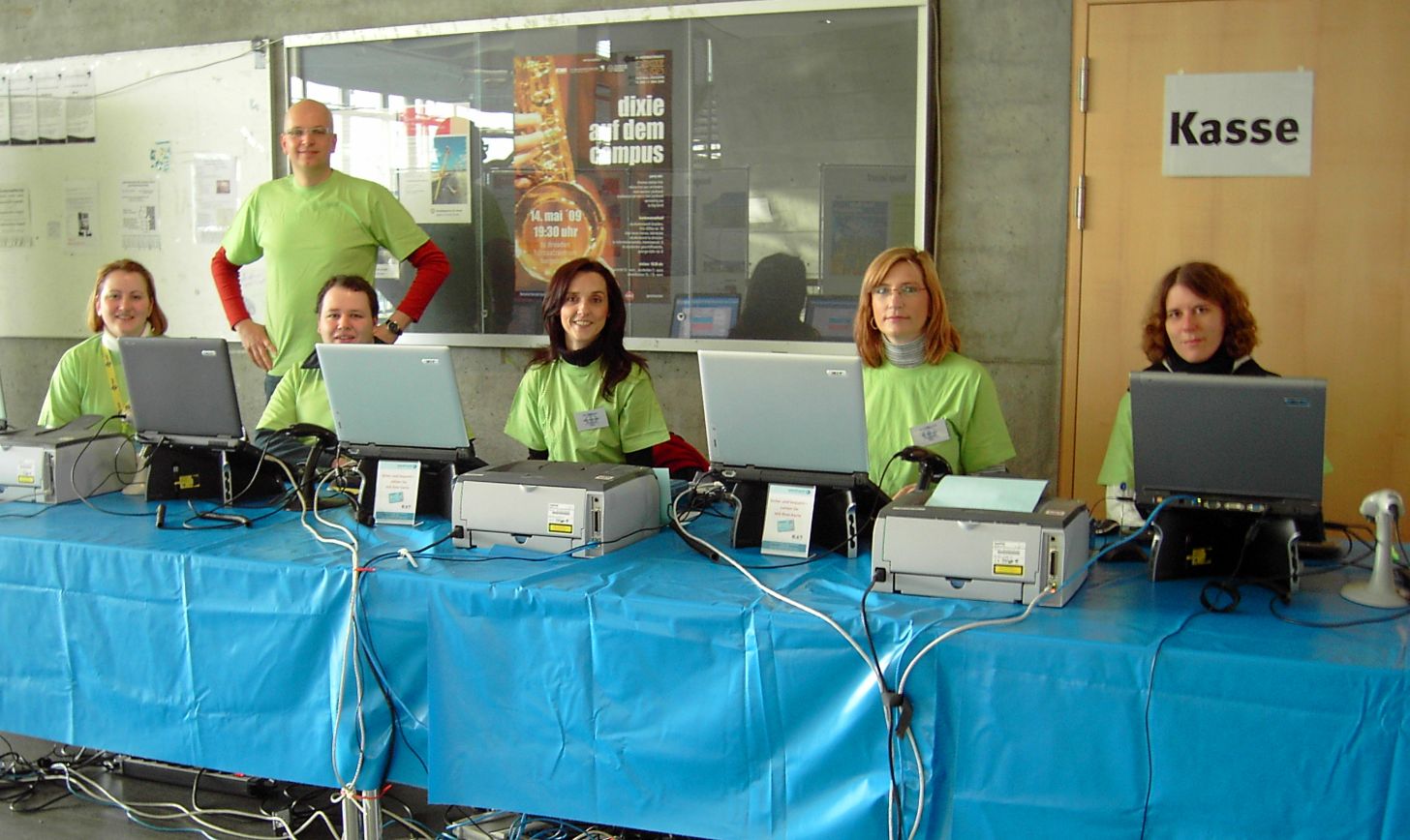 Die Organisatoren der Tagung, Mitarbeiter/innen des Tagungsbüros und studentischen Hilfskräfte tragen farbige T-Shirts und Namensschilder. Sie stehen Ihnen als Ansprechpartner für Fragen zur Verfügung.